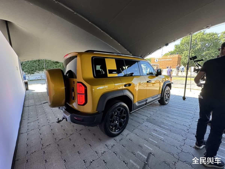 车身侧面采用经典的方盒子造型,B/C/D 柱垂直设计与门板隆起的线条,强化了整车的力量感。金属电动侧踏板与车顶行李架的配备,提升了越野实用性的同时,也方便了乘客上下车。轮眉与车身同色,使车辆看起来更加协调、高档。前后轮胎尺寸均为 265/65 R18,彰显稳重大气。车尾外挂的 “小书包” 延续了硬派越野的传统。尾门采用左侧横开设计,更贴合左舵靠右停车时的取物习惯,竖直排列的 LED 尾灯嵌入粗壮的黑色护板,夜间点亮后辨识度极高,并且尾灯还支持光毯投影功能,在露营等场景中增添了更多趣味性。车身提供多种颜色选择,满足不同消费者的审美需求。